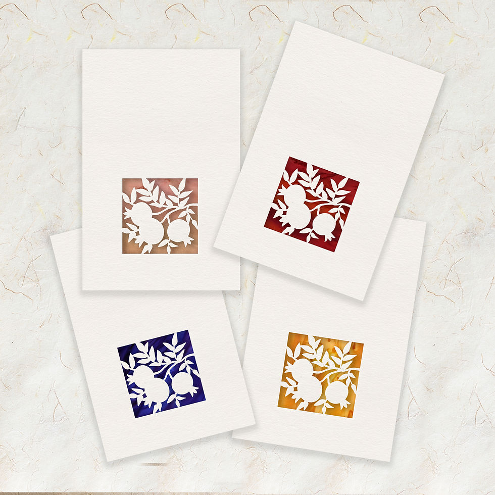 רביעיית כרטיסי ברכה דקלים צבעוניים